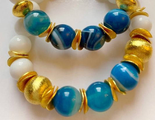 Agate Gemstone Bracelet with Brushed Gold Vermeil