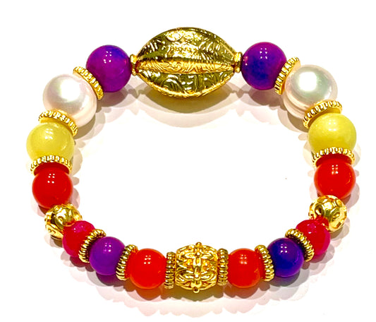Multi-Gemstone Rhodochrosite, Sugilite & Jade Gemstone Gold Beaded Bracelet