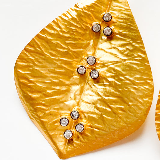Lightweight 22k Gold Vermeil Leaf and Topaz Leaf Statement Earrings 2.75”