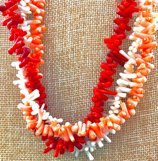 Irregular Sapling-Shaped Cluster, Triple-Strand Coral Statement Necklace