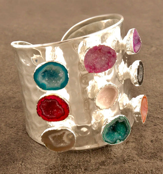 Sterling Silver Multi-Colored Geode Druzy Adjustable Cuff