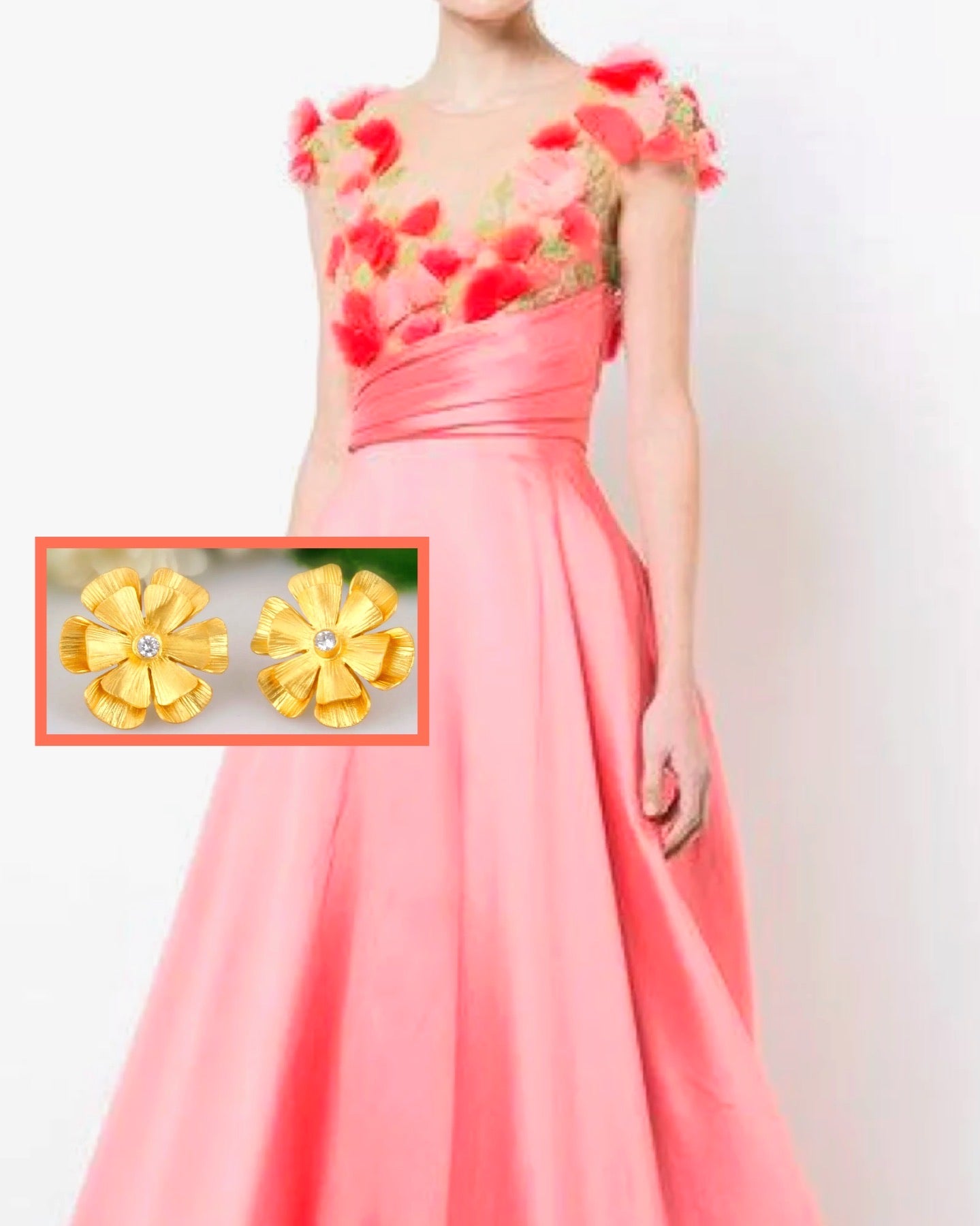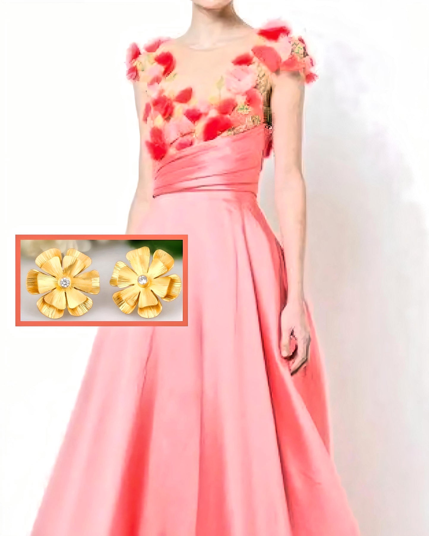 White Topaz 22k Gold Flower Statement Earrings 1”