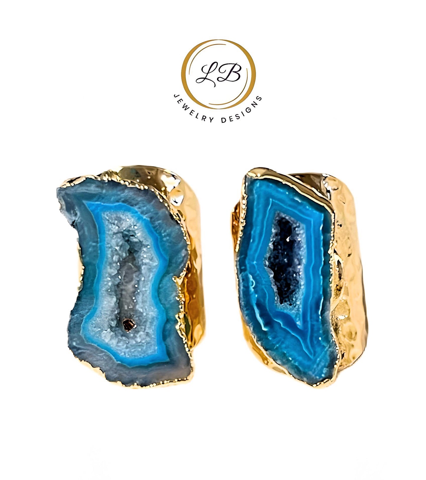 Blue Geode Druzy Adjustable Gold Cigar Ring