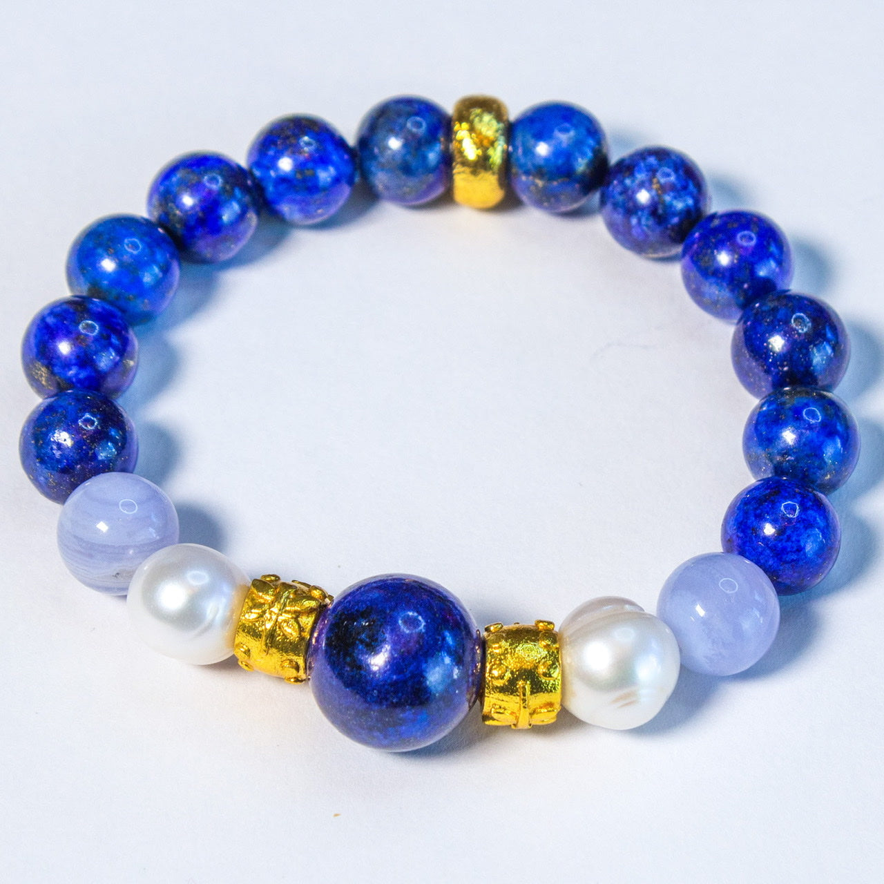 Lapis Lazuli, Pearls & Blue Lace Gemstone Beaded Bracelet