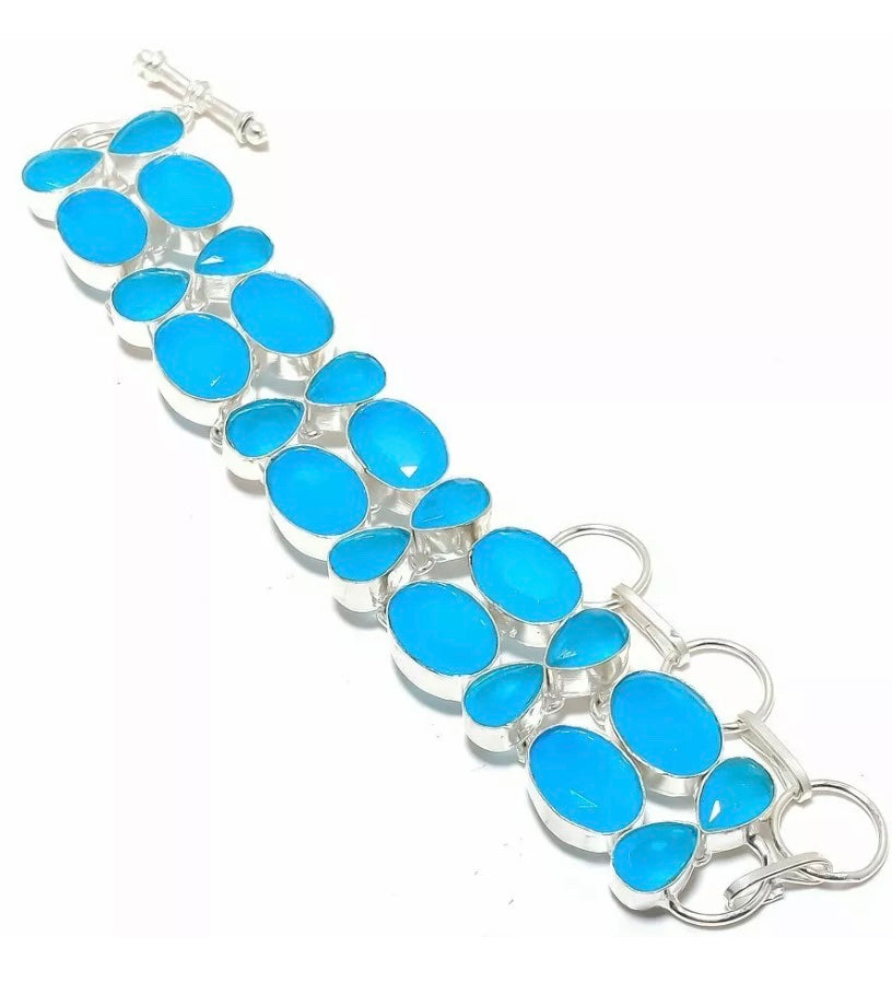 Sky Blue Onyx Gemstone Sterling Silver Bracelet