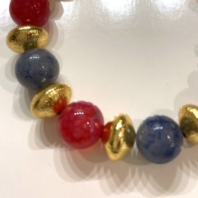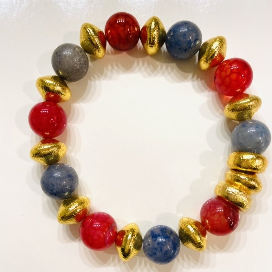 Blue Sodalite, Red Agate Gemstone Gold Beaded Bracelet