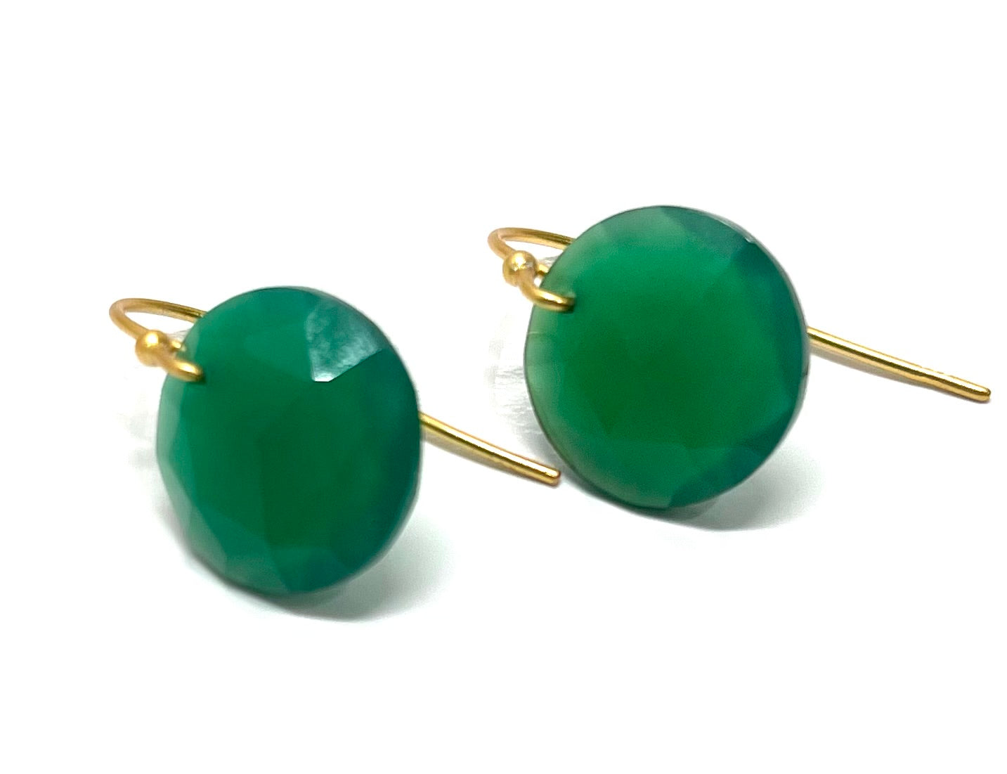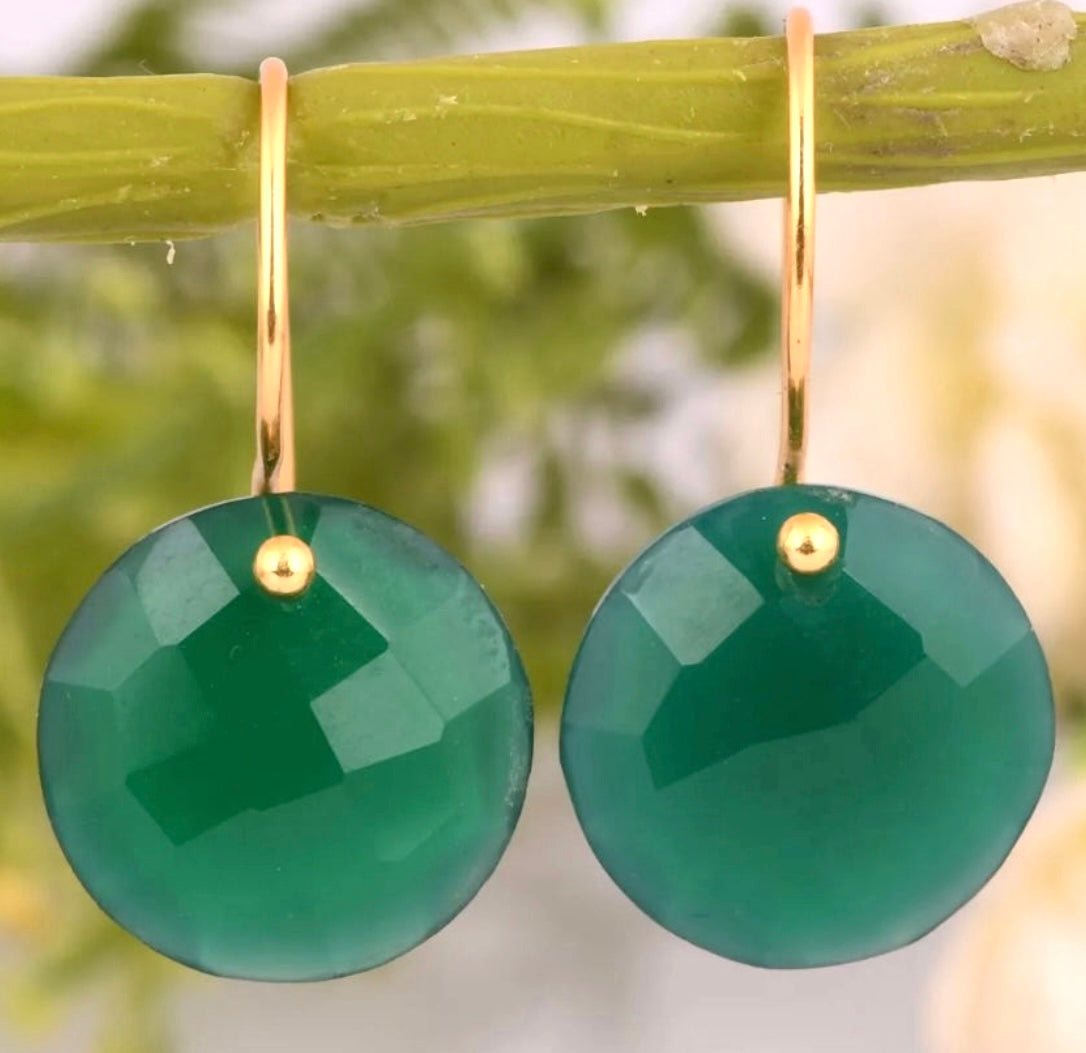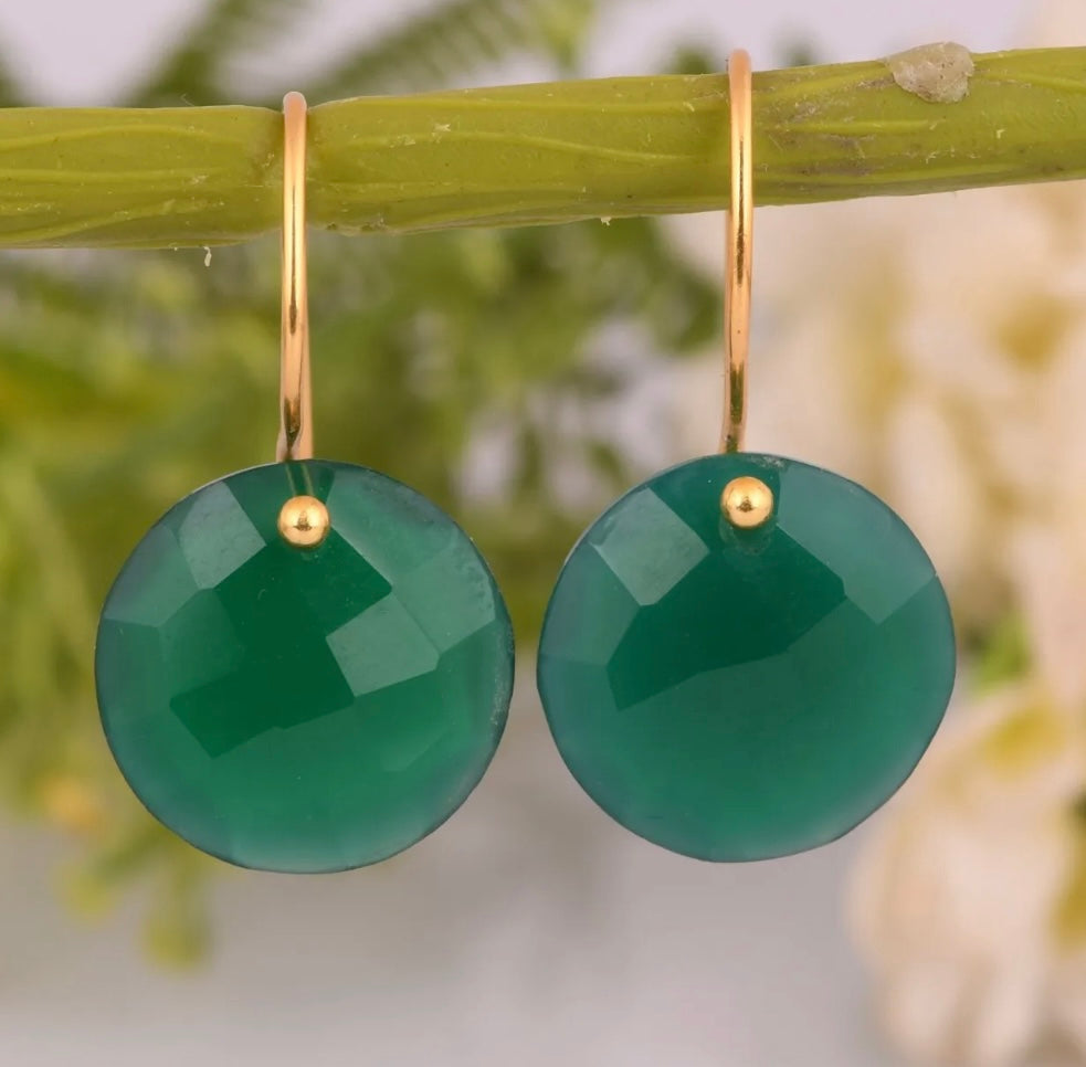 Briolette Green Onyx Gemstone Dangle Earrings 1.5”