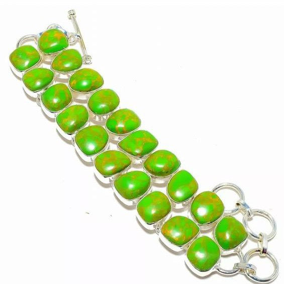 Green Copper Turquoise Gemstone Sterling Silver Bracelet