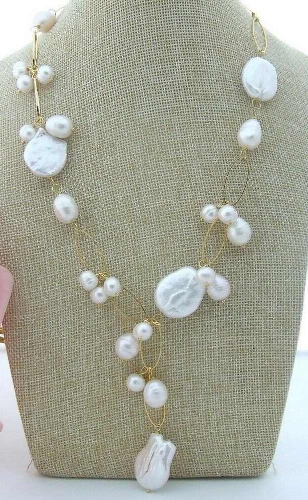 Pearl Cluster 18k Gold Chain Statement Necklace 21"