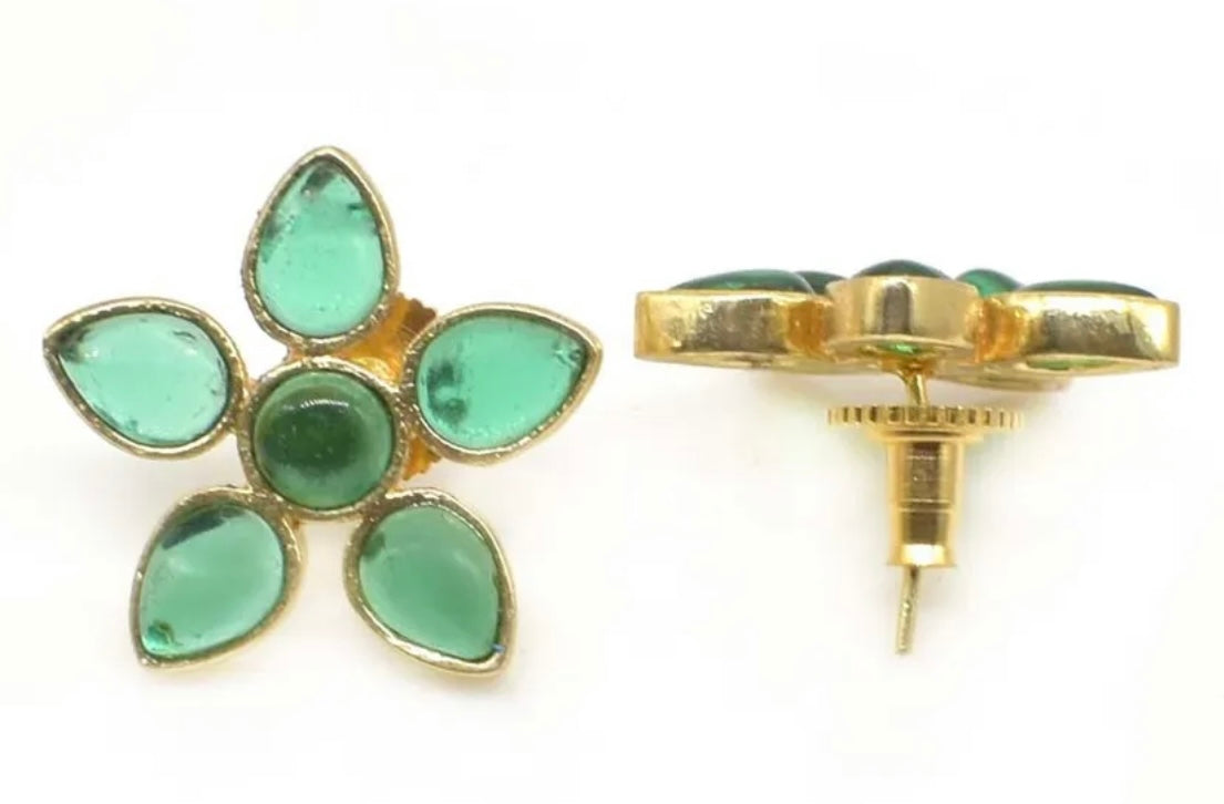 Multi-Gemstone Flower Gold Stud Earrings 1”