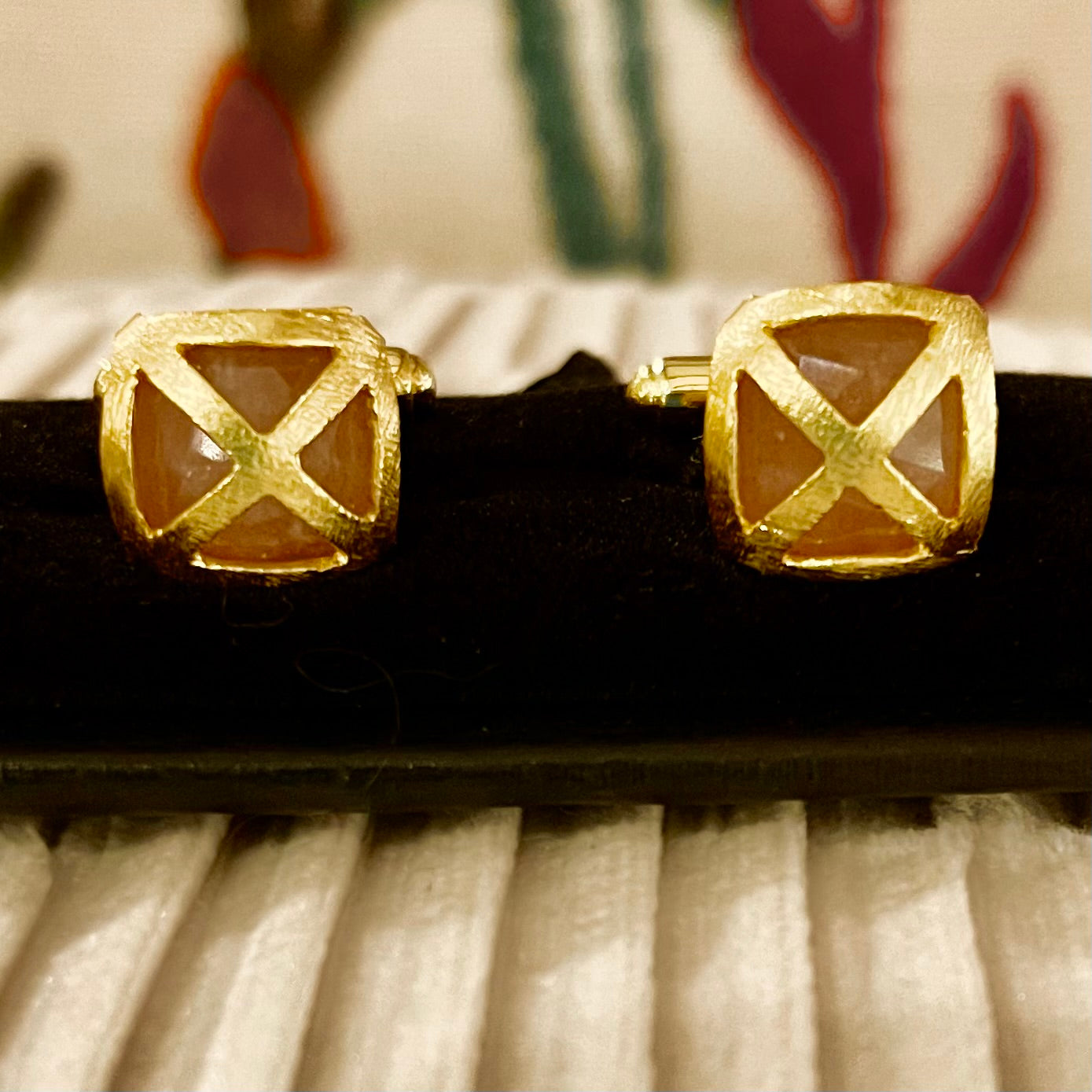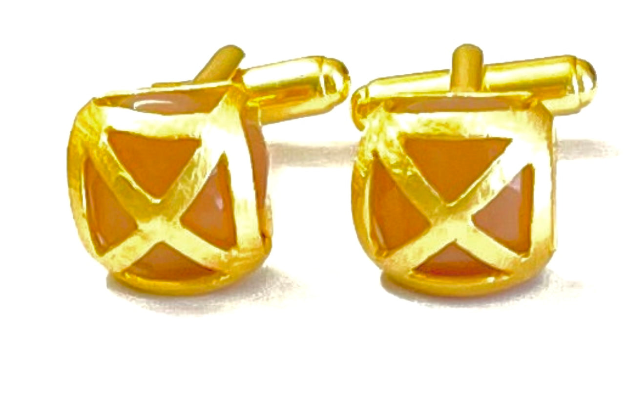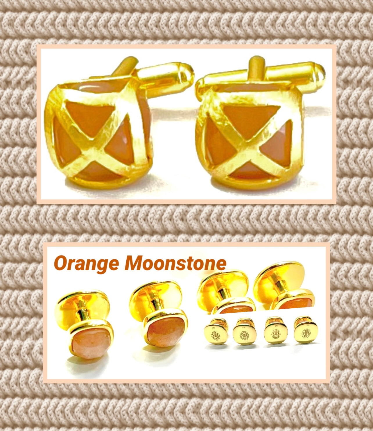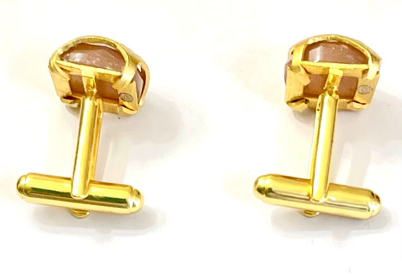 Criss Cross Orange Moonstone 22k Brusehed Gold Vermeil Cufflink Set w/Logo