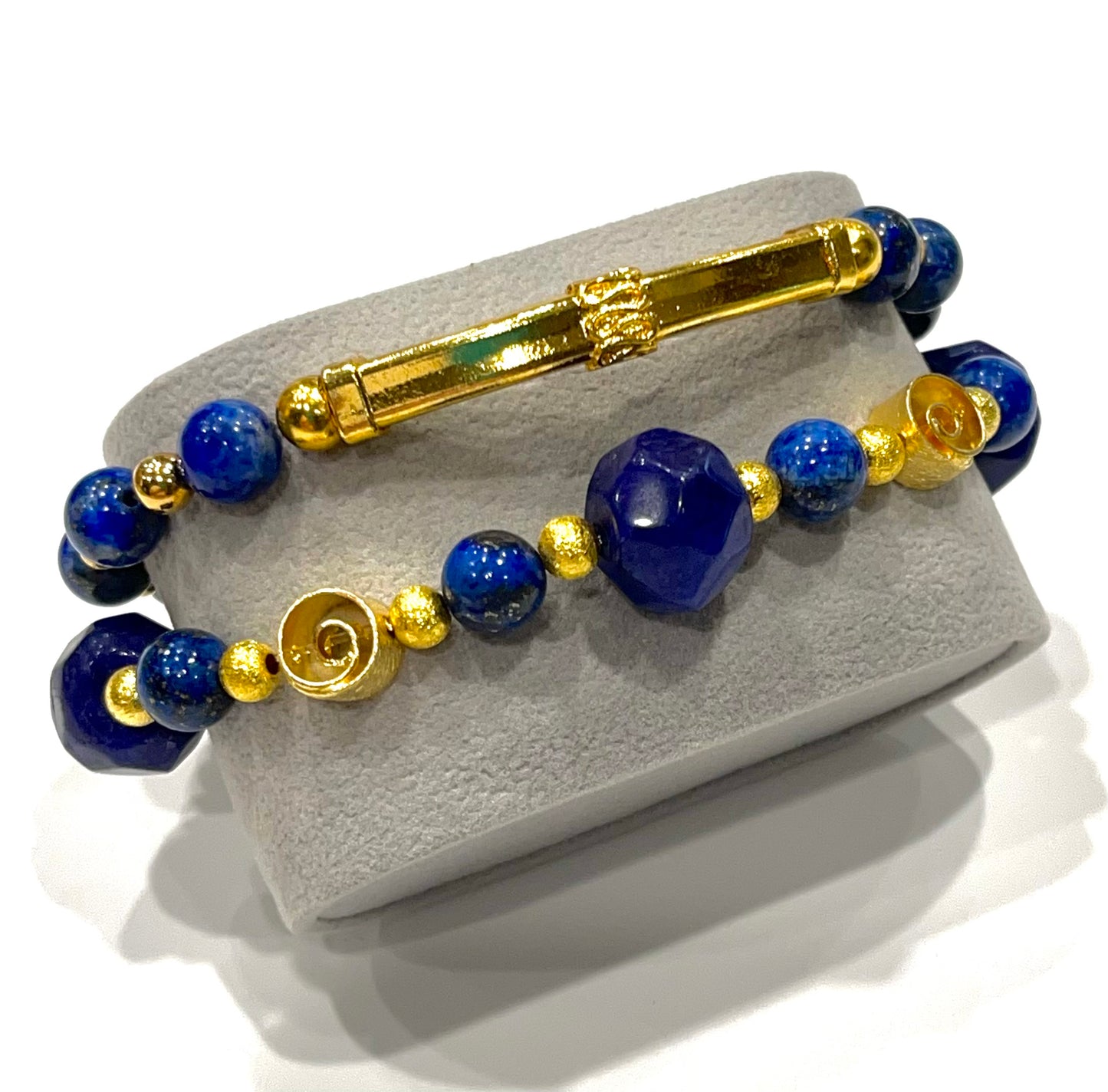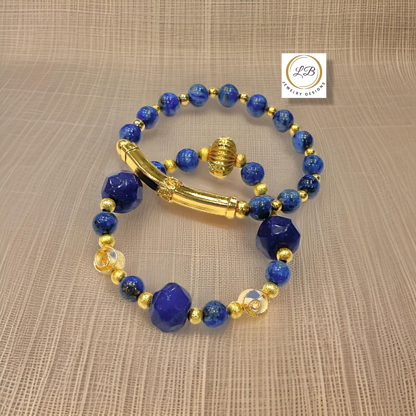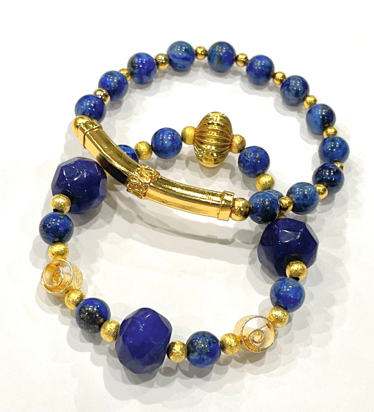 Lapis Lazuli & Sapphire Gemstone Gold Bracelet Stack