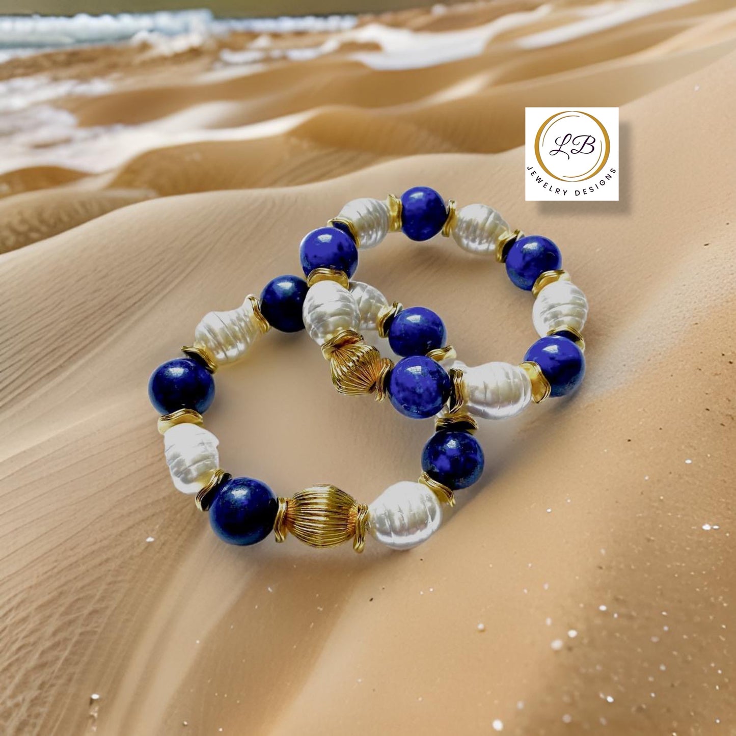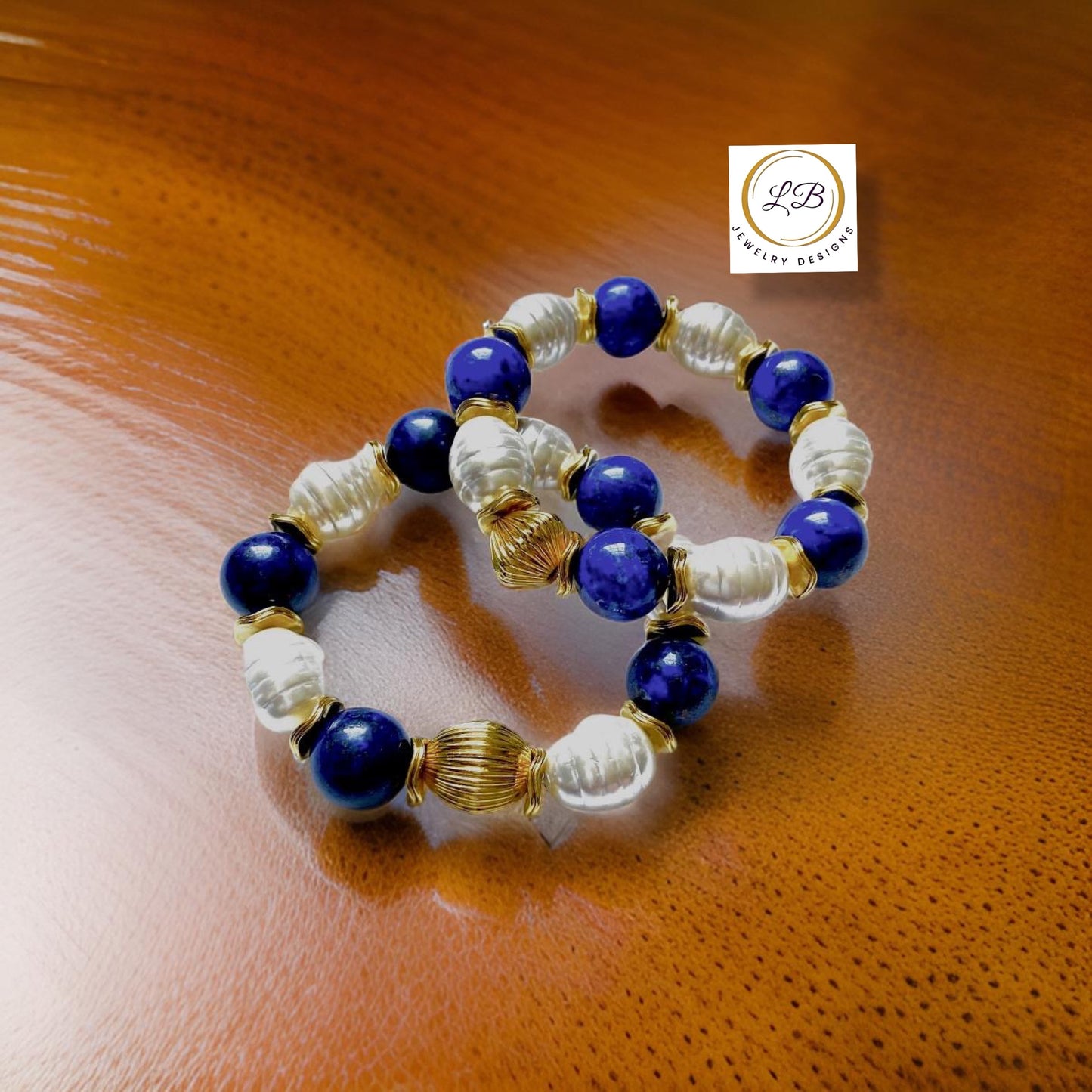 Lapis Lazuli & Pearl Gemstone Statement Bracelet