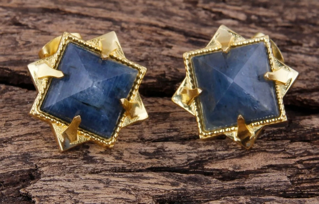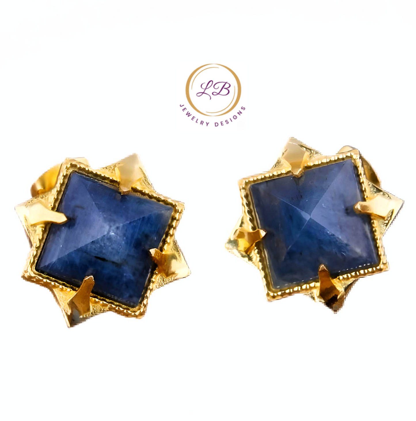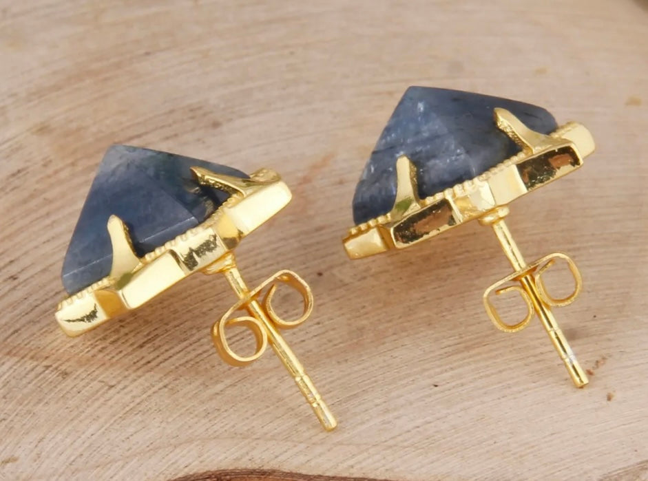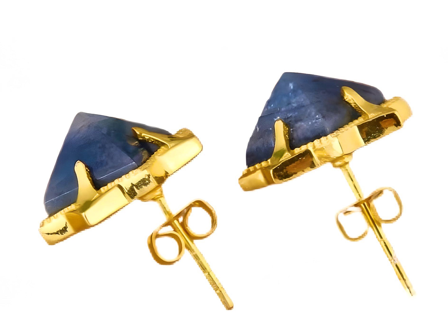Blue Kyanite Gemstone Pyramid Stud Earrings