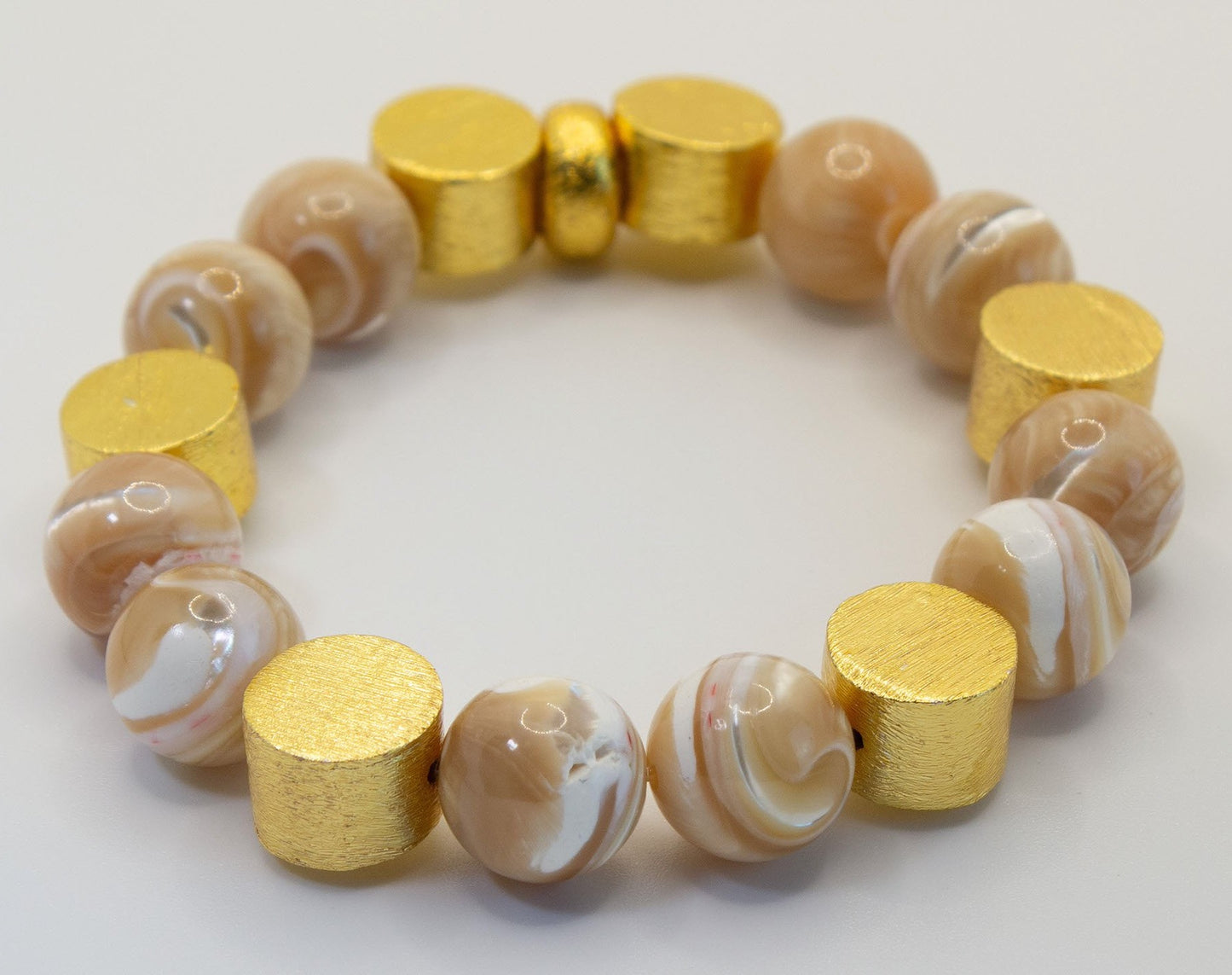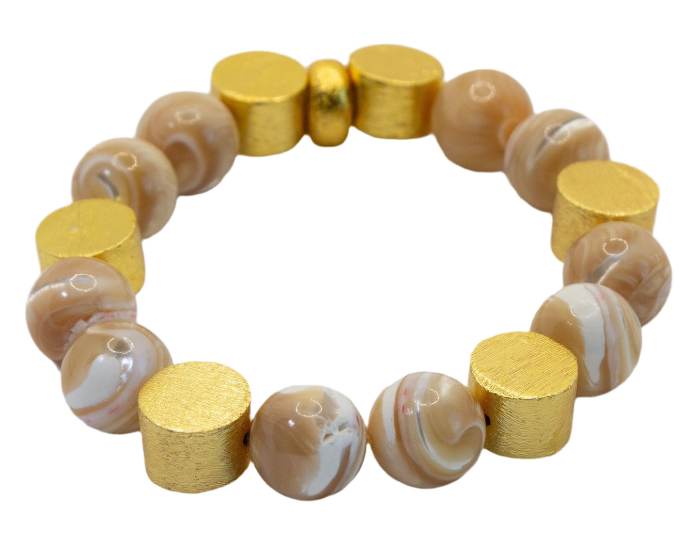 Mother of Pearl (Beige) Beaded Bracelet with Brushed Gold Vermeil