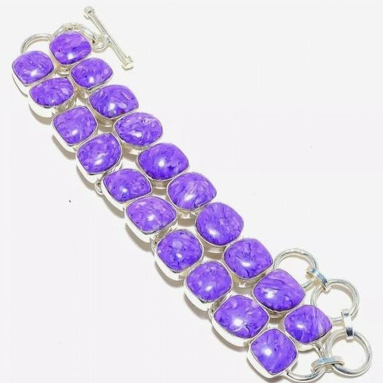 Rare Violet Purple Charoite Gemstone Sterling Silver Bracelet