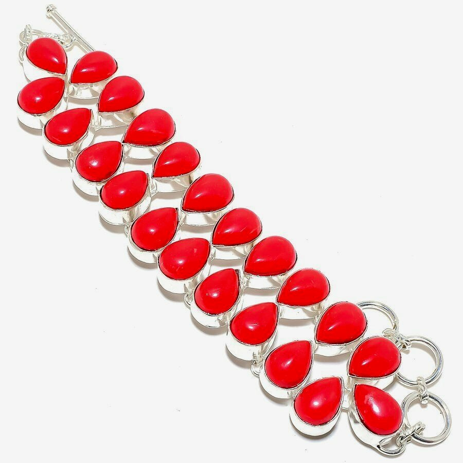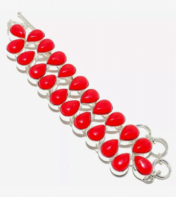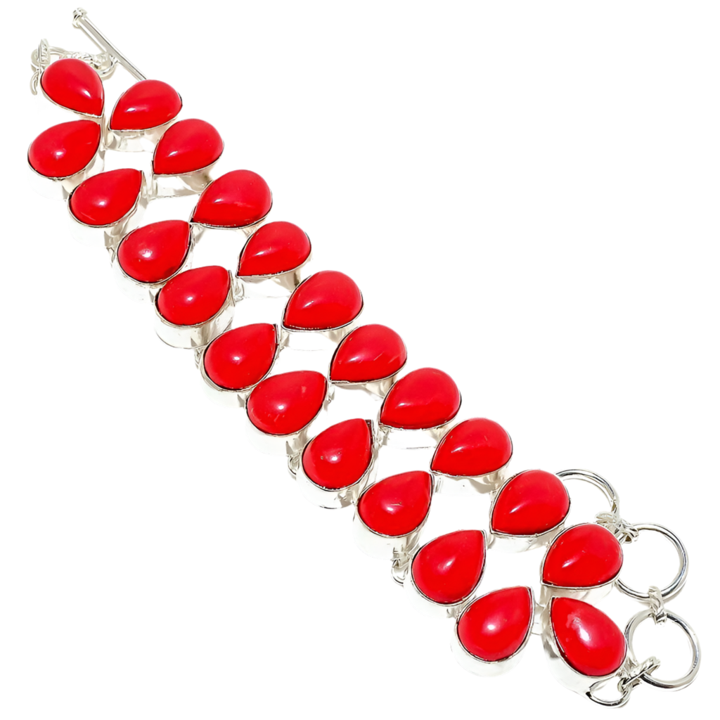 This Red Coral Gemstone Sterling Silver Bracelet boasts two rows of genuine gemstones and an adjustable 6-9" toggle clasp. Not only is it a unique and eye-catching piece of jewelry, but it is also thought to provide its wearer with increased courage and healing effects.
