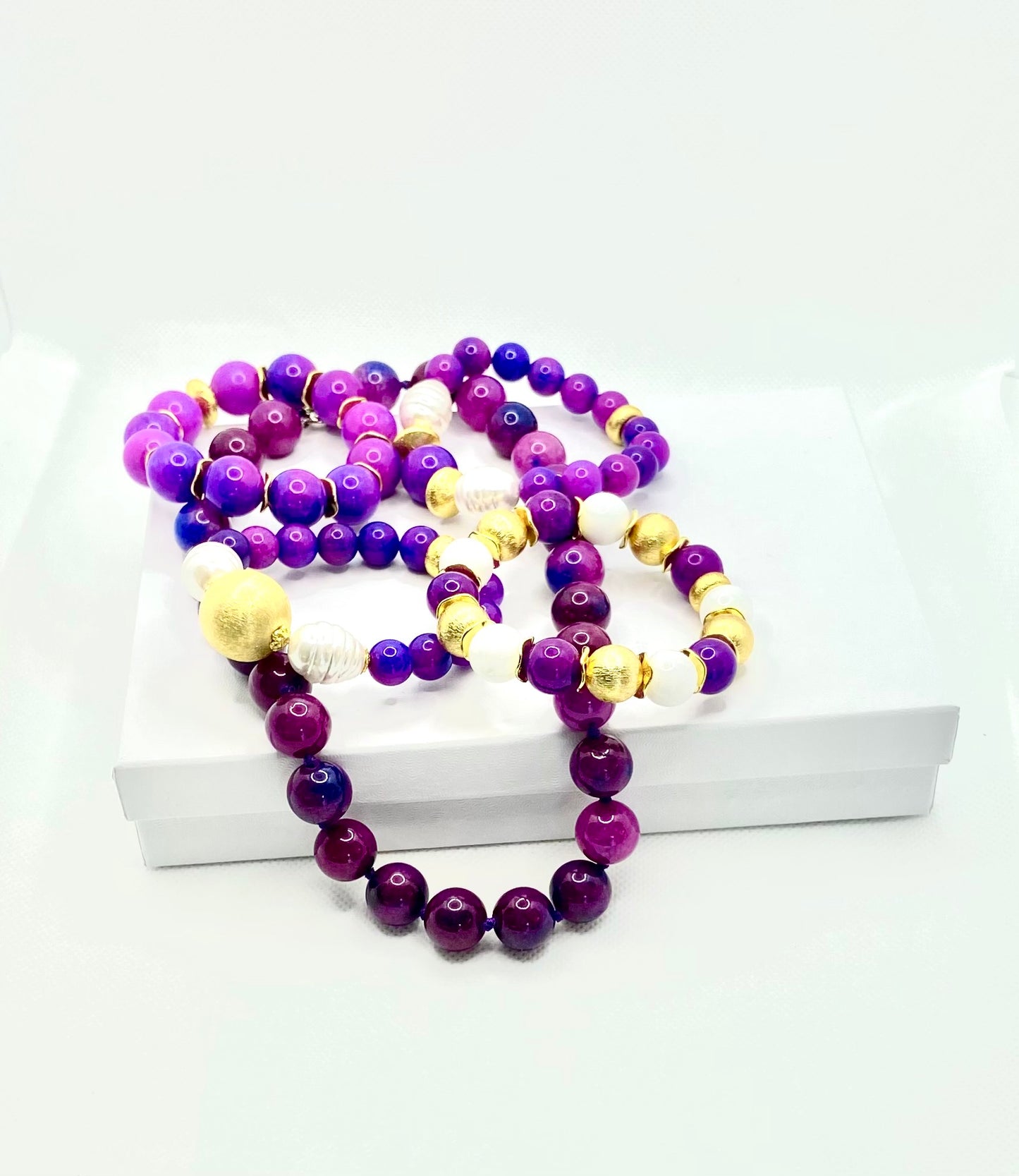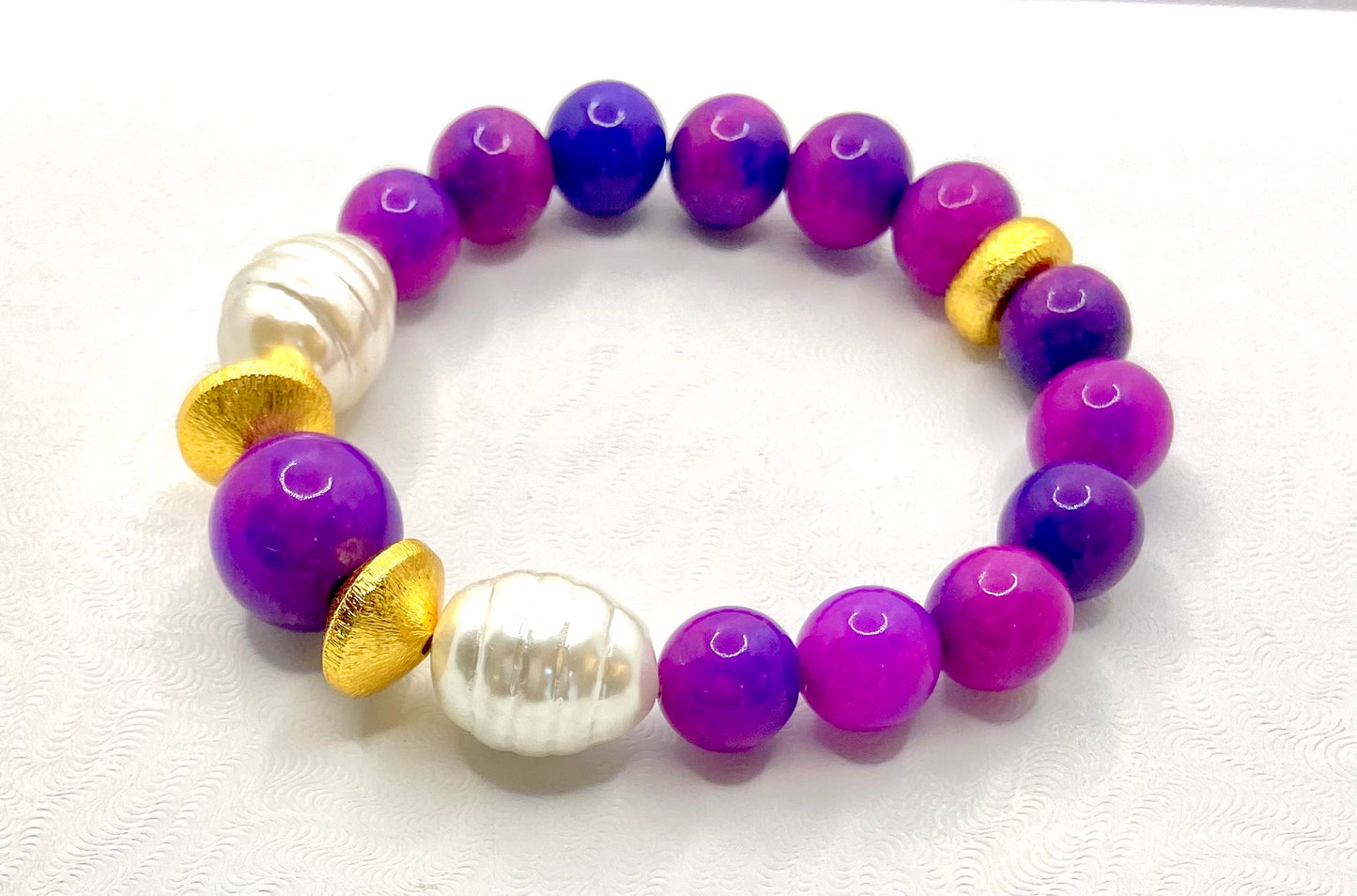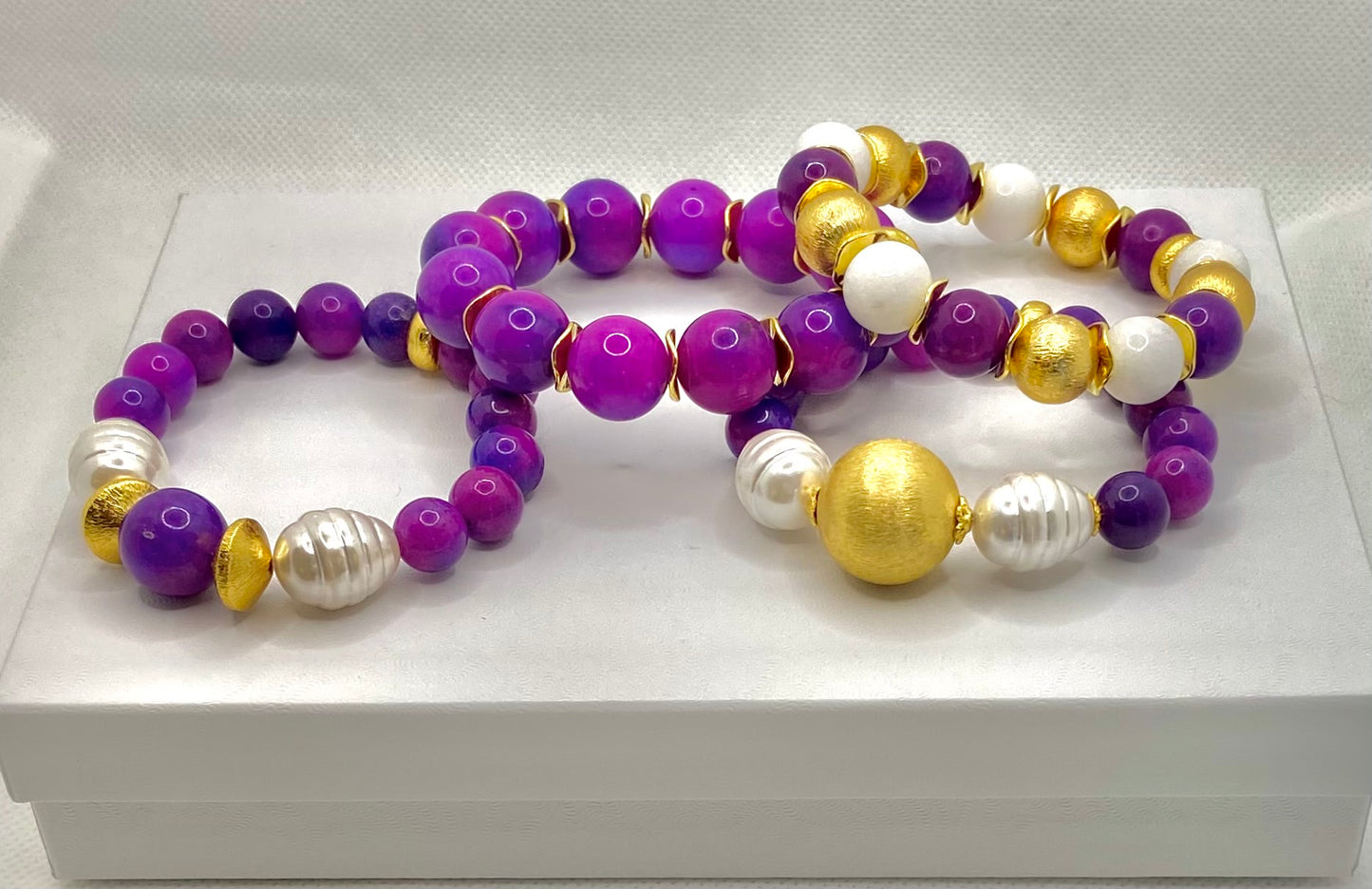 Royal Purple Sugilite Gemstones & Freshwater Pearls Gold Vermeil Bracelet