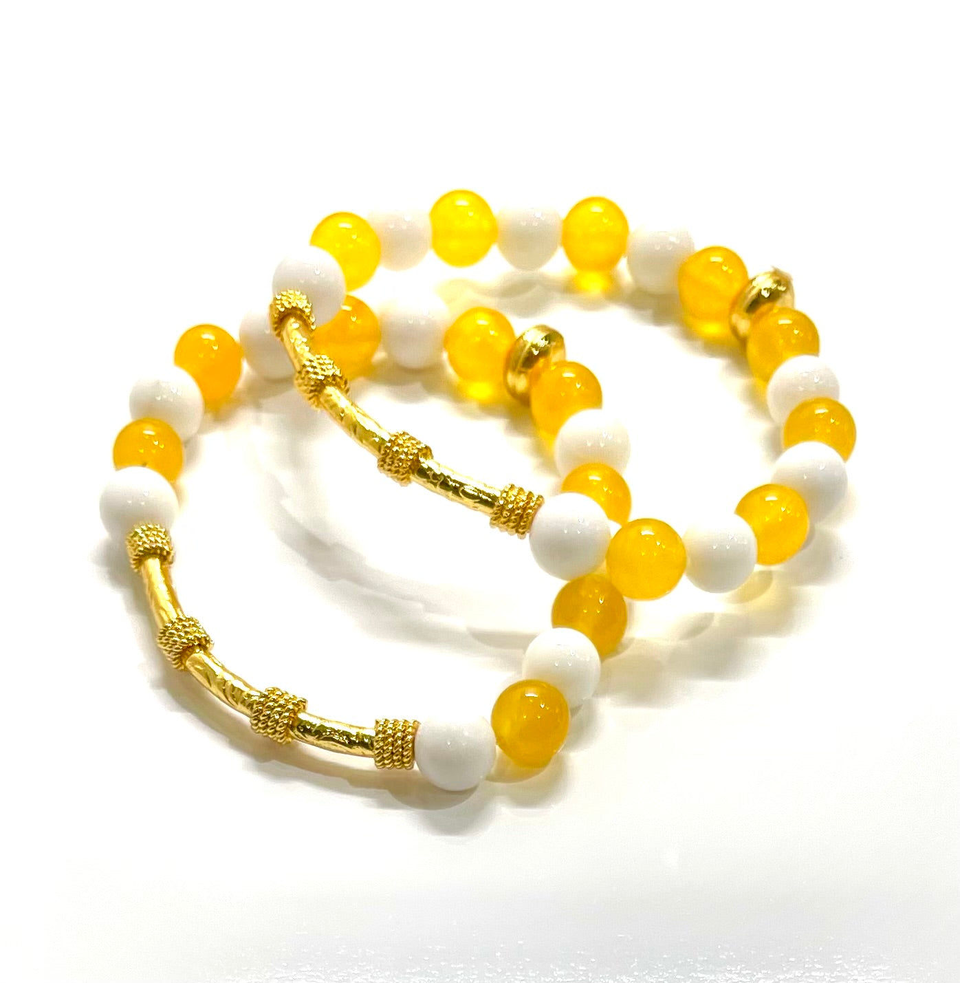 Lemon Quartz & Alabaster Gemstone Bali Tube Beaded Bracelet