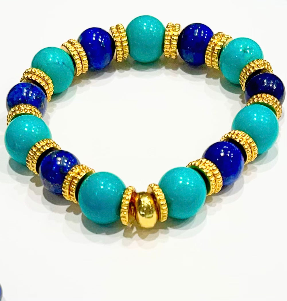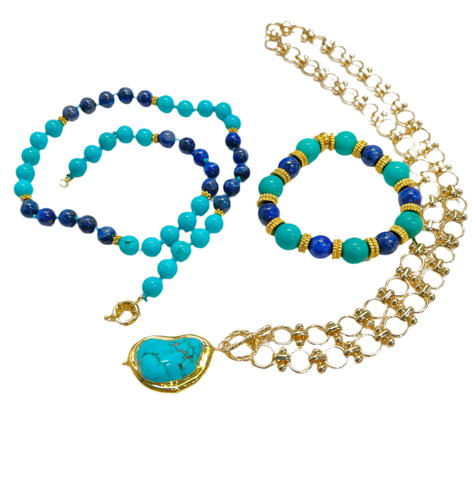 Turquoise & Lapis Lazuli Gemstone Layered Necklace and Bracelet Set