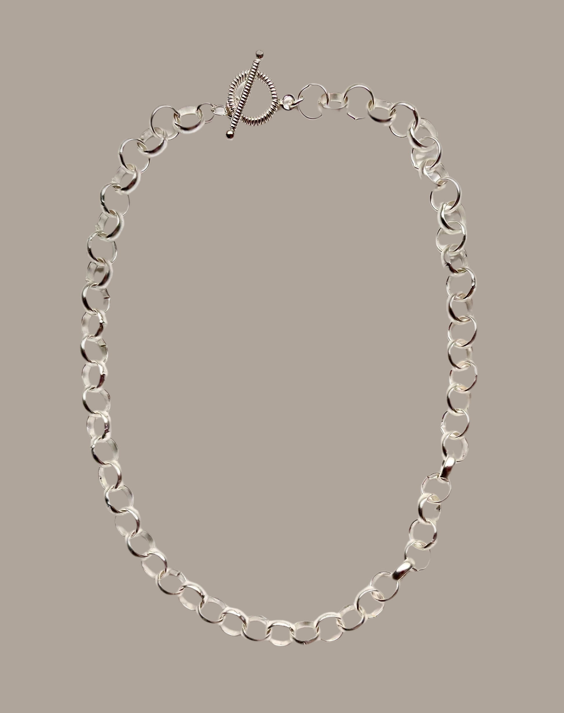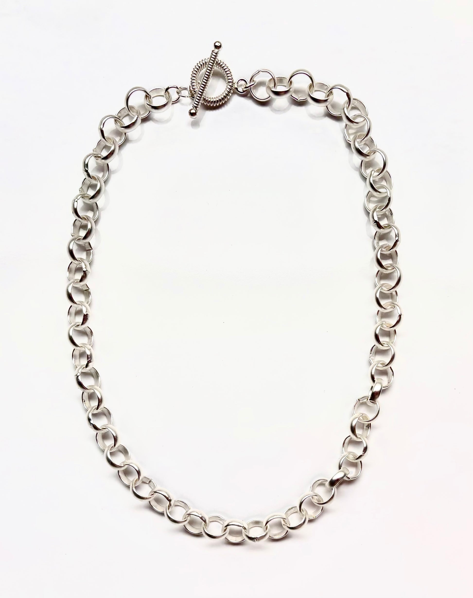 Matte Silver Rolo Cable Chain 10mm Toggle Chain Necklace 18”